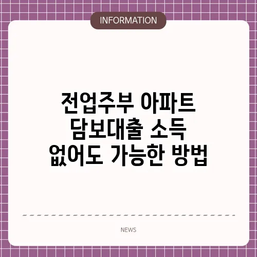 전업주부 아파트 담보대출 소득 없어도 가능한 방법
